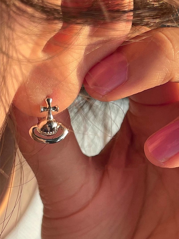 Vintage Cross Saturn Styling Hoop Earring