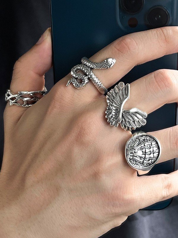 Men’s 4pcs Carved Letter Pattern Ring Set