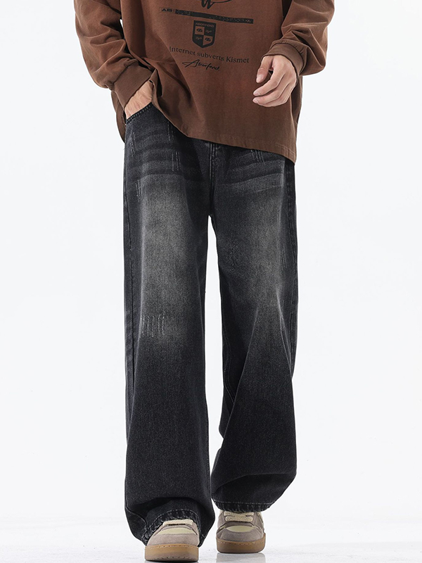 Men’s Letter Embroidered Light Wash Loose Jeans