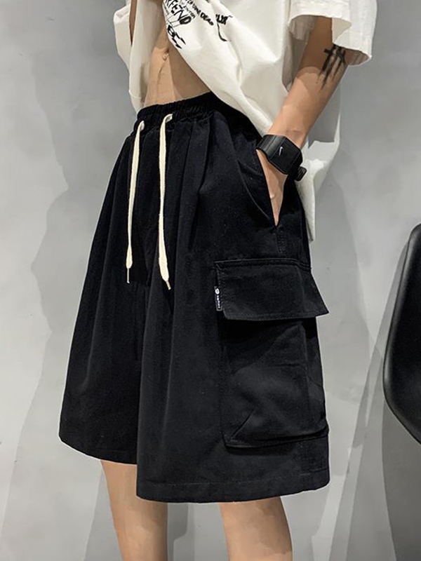 Men’S Solid Multi Pocket Loose Cargo Shorts