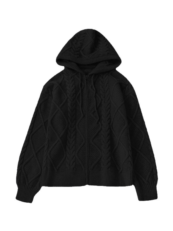 Men’s Solid Cable Knit Zip Up Oversized Hoodie