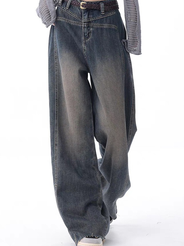 High Street Vintage Distressed Wide Legs Boyfriend Jeans