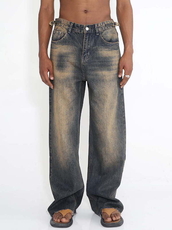 Men’s Vintage Distressed Raw Trim Straight Leg Jeans