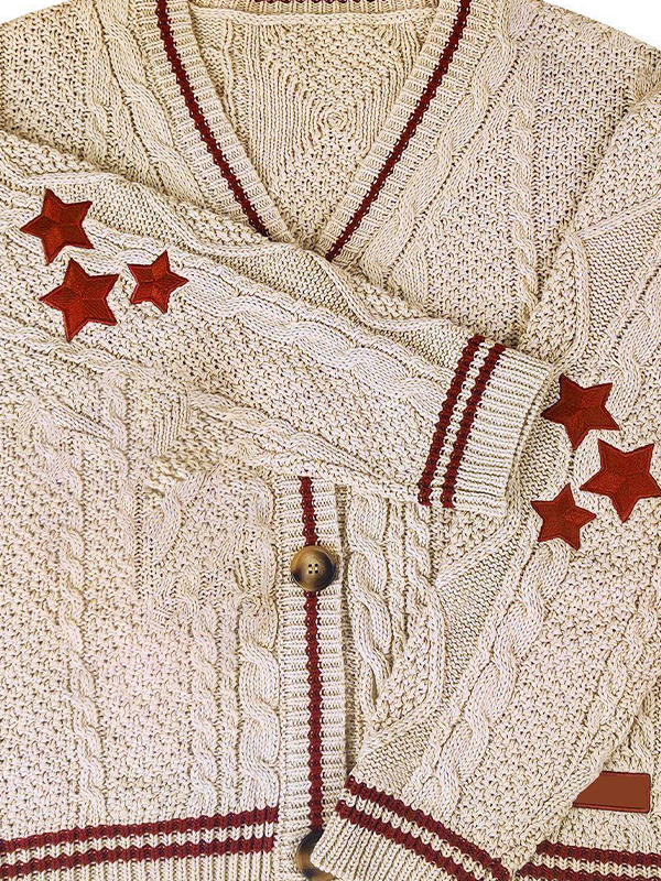 Oversize Star Embroidered Cable Knit Cardigan