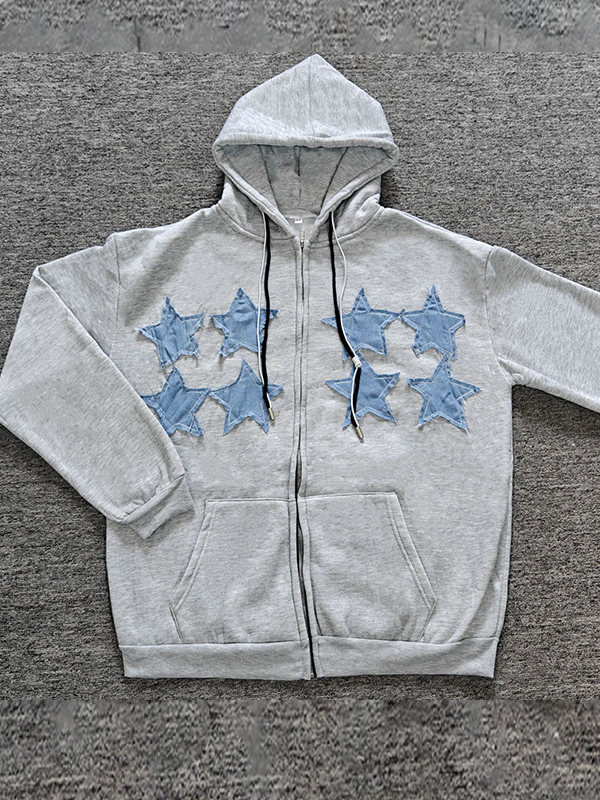 Vintage Cross Rhinestone Print Zip Up Oversized Hoodie