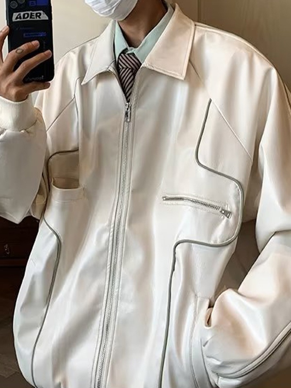Men’s Cross Embroidery Print PU Leather Patch Jacket