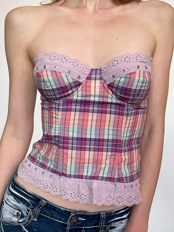 Fluffy Patchwork Chest-Shaped Bow Bandeau Top