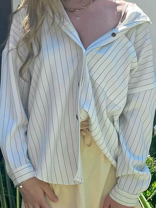 Pinstripe V Neck Breasted Long Sleeve Blouse