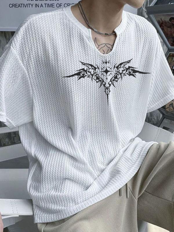 Mesh Flower Print Short Sleeve Tee&Slit Mini Skirt Set