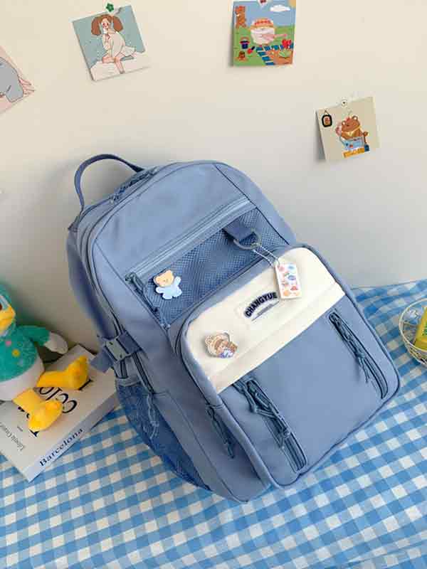 Color-Block Mesh Pocket Casual Backpack