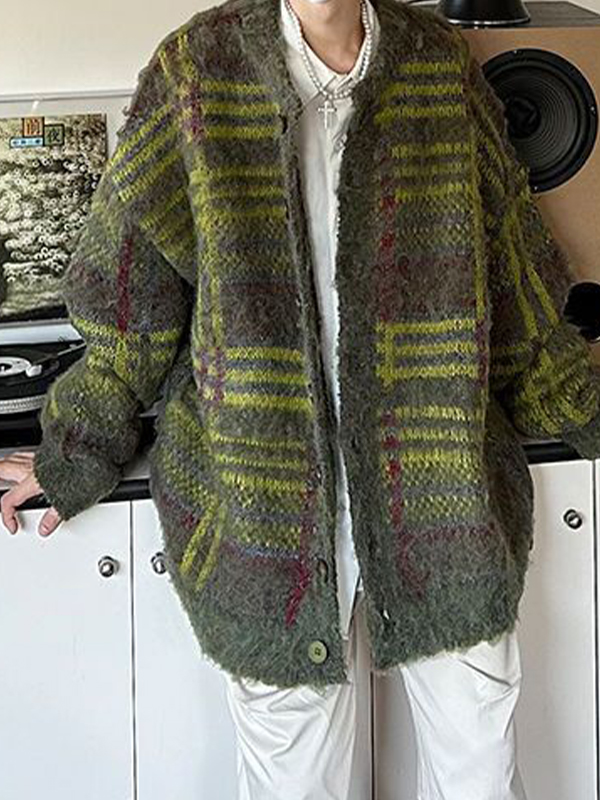 Men’s Contrast Color Striped Knit Cardigan Outwear