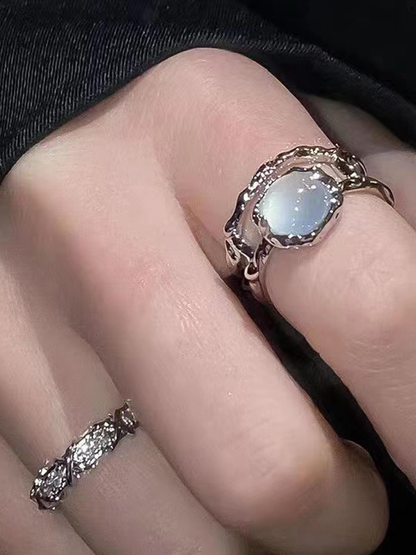 2pcs Fairycore Moonstone Diamond Cuff Ring