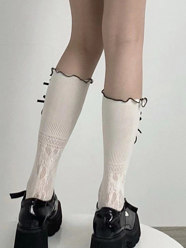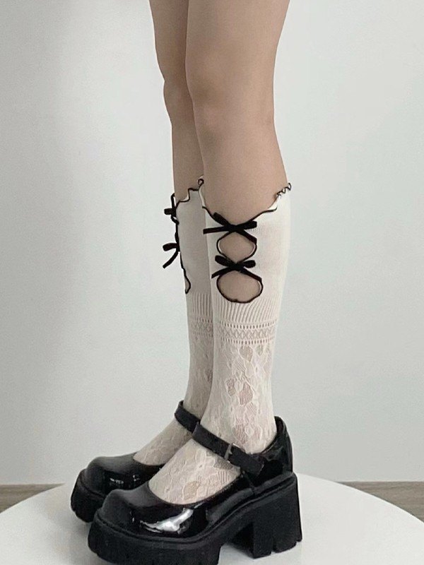 Details: Cutout Detail, With Multi Bow Decors, Lettuce Cuffs, Calf Length