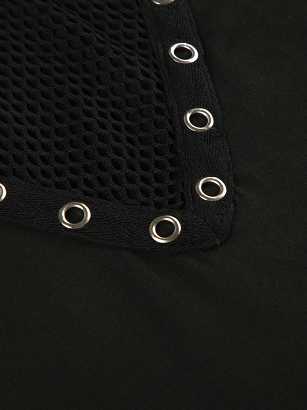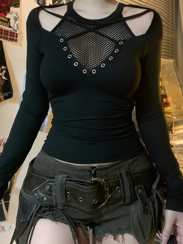 Grid Cross Stitching Long Sleeve Tee