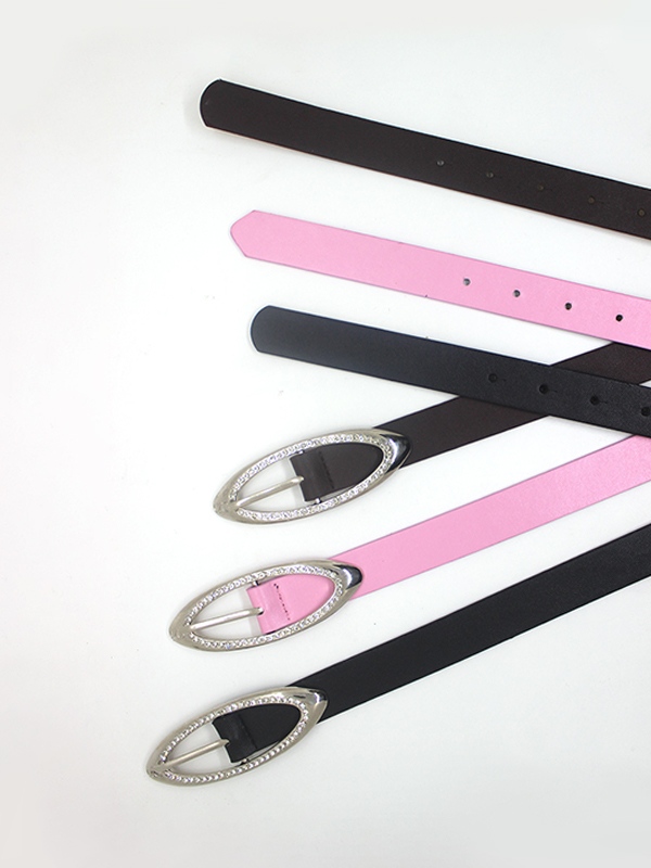 Hollow Out Oval Glittering Rhinestone Buckle Belt