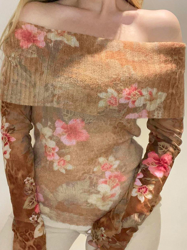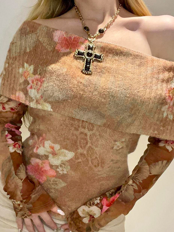 Long Sleeve Knits Floral Neckline