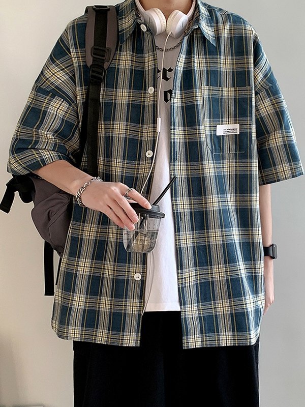 Be the first to review “Men’s Pocket Buttoned Short Sleeve Checkered Shirt”