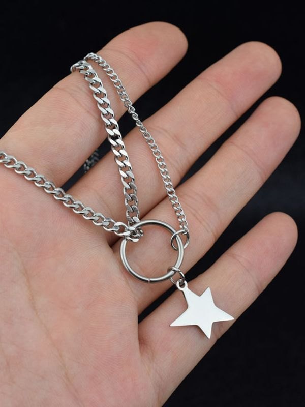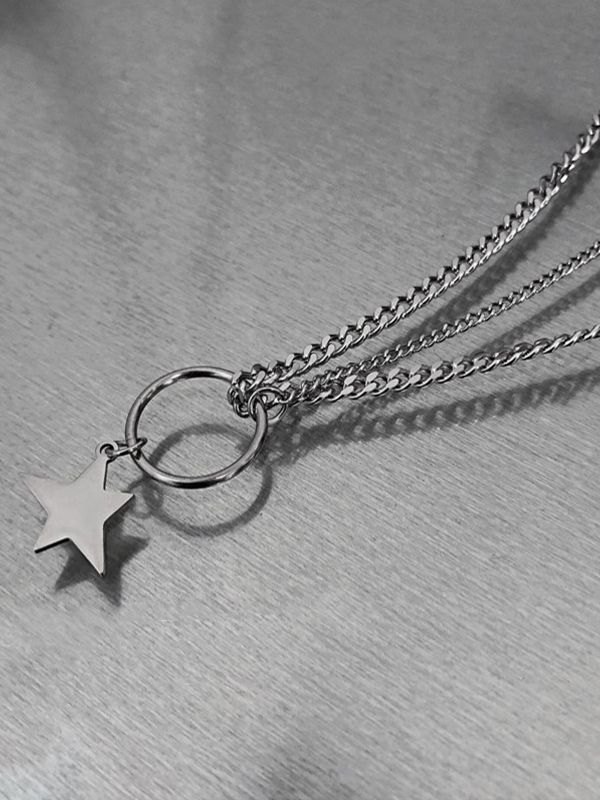 Men’s Star Pendant Layered Chain Necklace