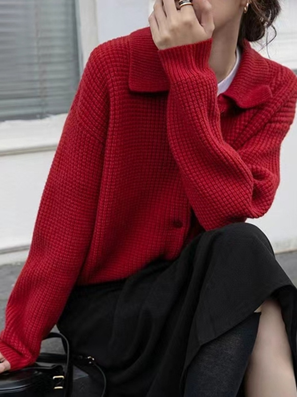 Be the first to review “Solid Waffle Lapel Neck Cardigan”