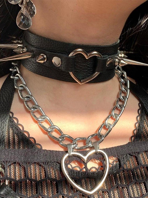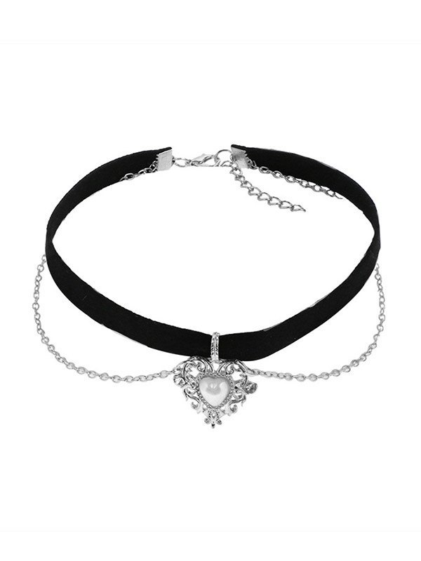 Gothic Heart Chain Velvet Choker Necklace
