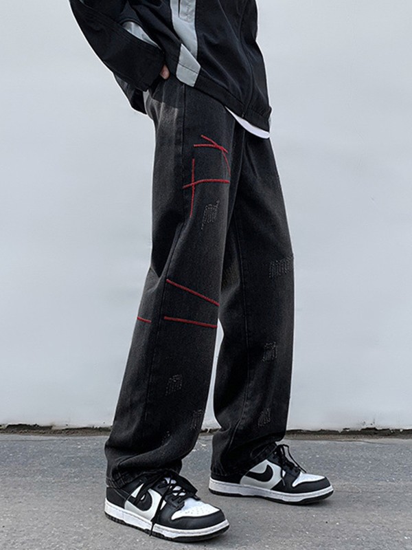 Men’s Zipper Lace Up Decor Cargo Jeans